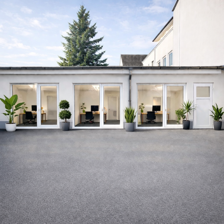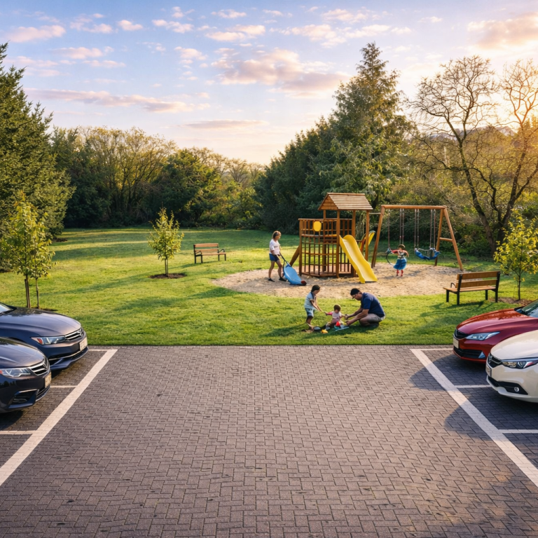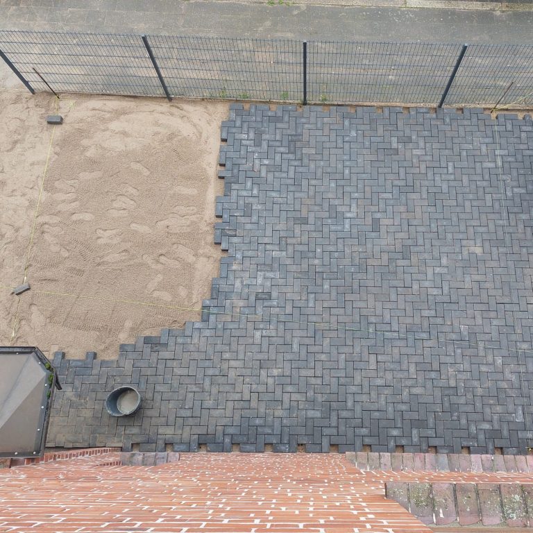 Hier haben wir für unsere Mieter:innen in Faldera Stellplätze direkt vor der Haustür gepflastert. Wohnkomfort ist Lebensqualität.